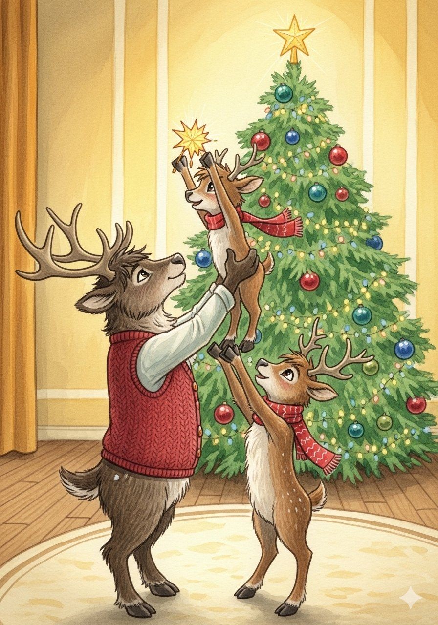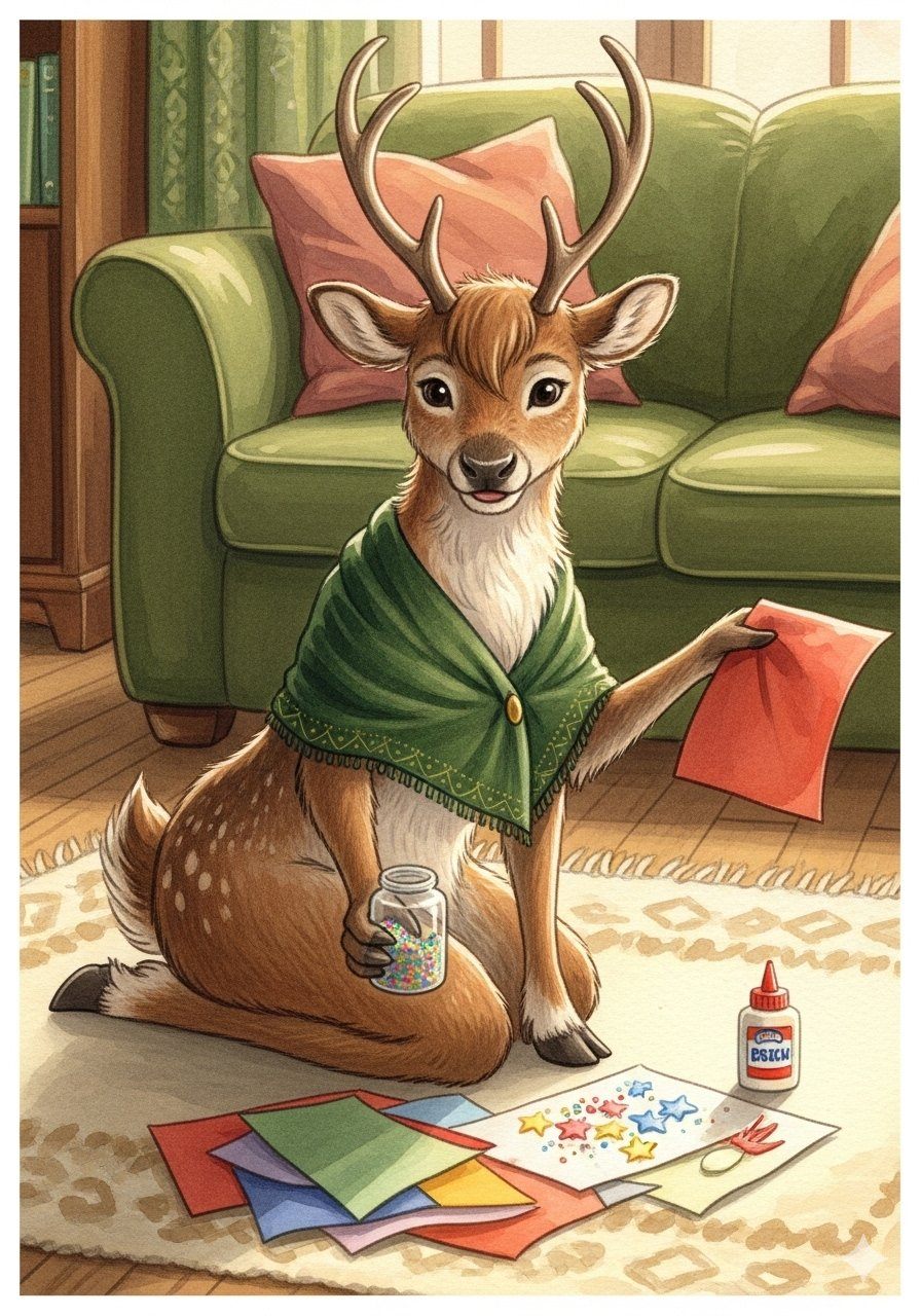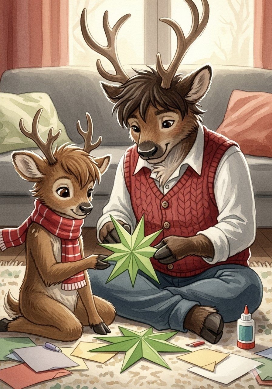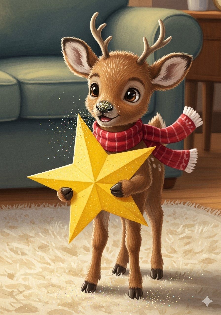 Mama Elara saw her little reindeer looking so glum. "What's the matter, my sweet Niko?" she asked softly, giving him a warm nuzzle.