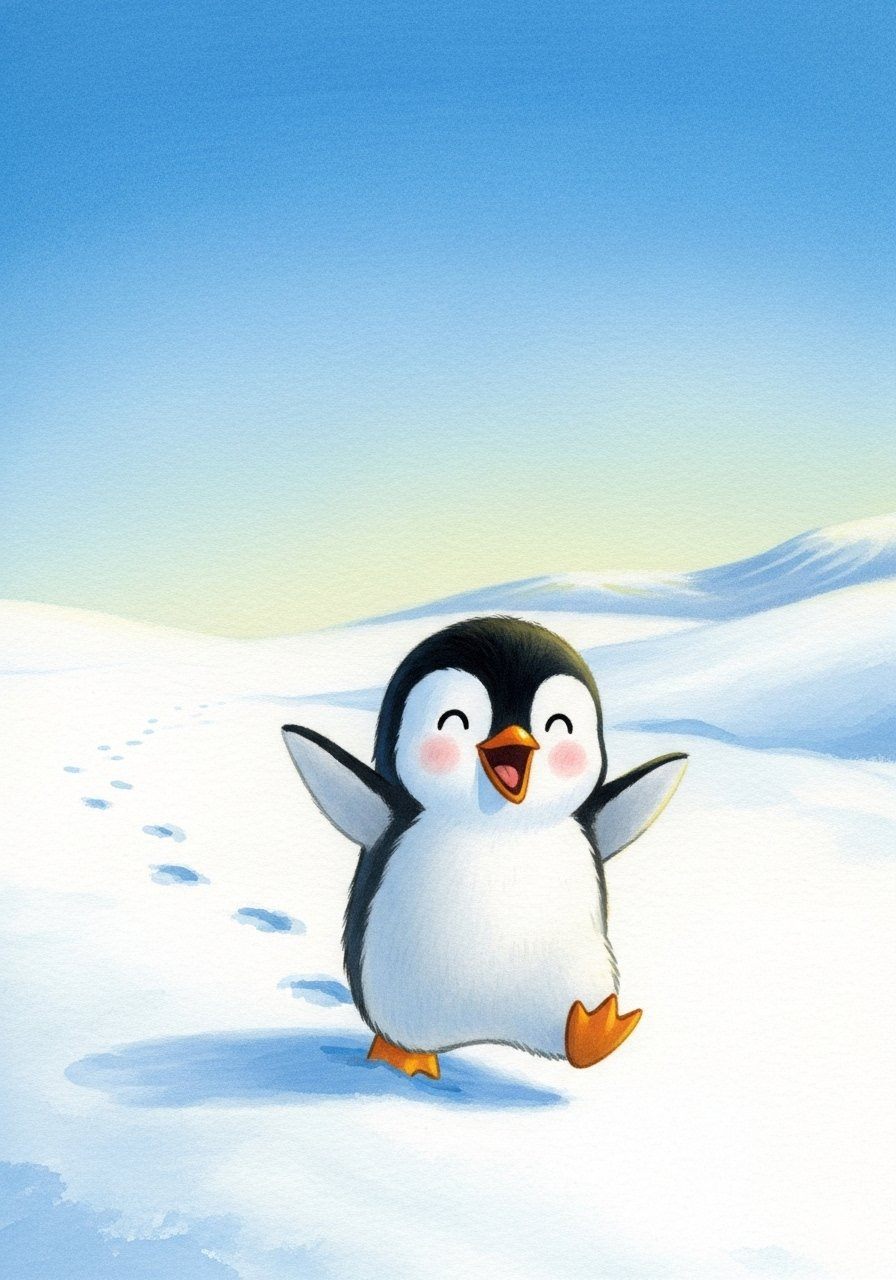Pip the penguin waddled and wiggled. "Hooray! Hooray!" he chirped. "We're going to the big ice festival today!"