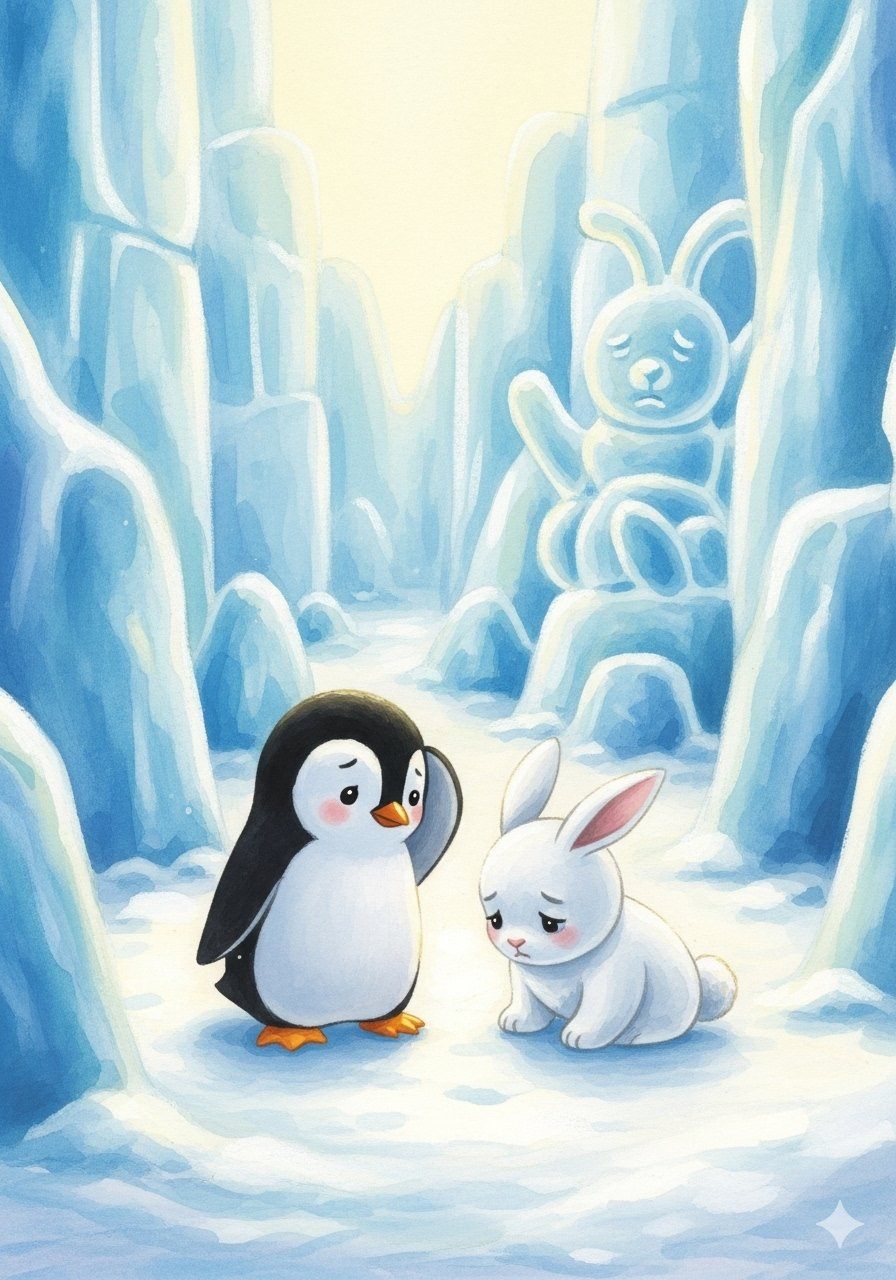 Pip waddled over to the bunny. "Why are you sad?" he asked in a soft, quiet voice.